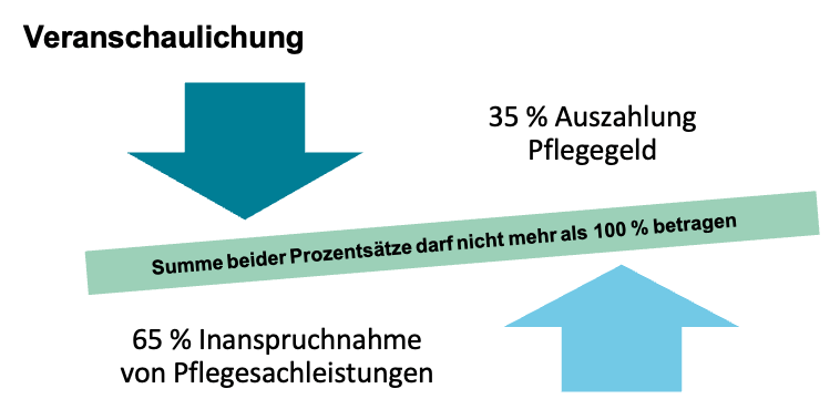Nach der monatlichen Abrechnung des ambulanten Dienstes mit der Pflegekasse wird der offene Betrag prozentual als Pflegegeld ausgezahlt, falls die Pflegesachleistungen nicht vollständig ausgeschöpft wurden.